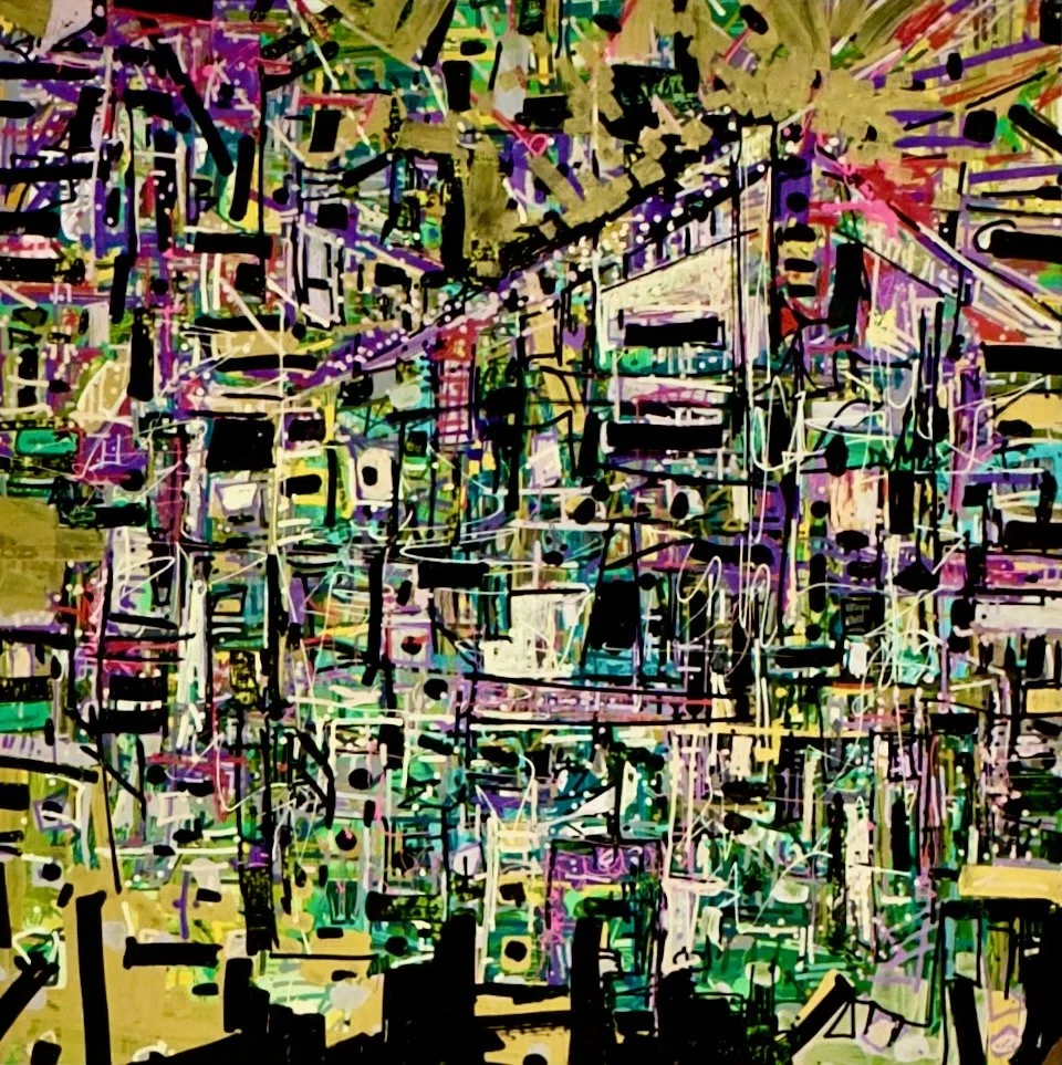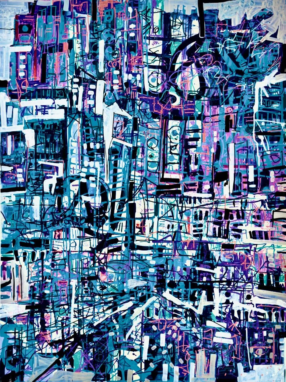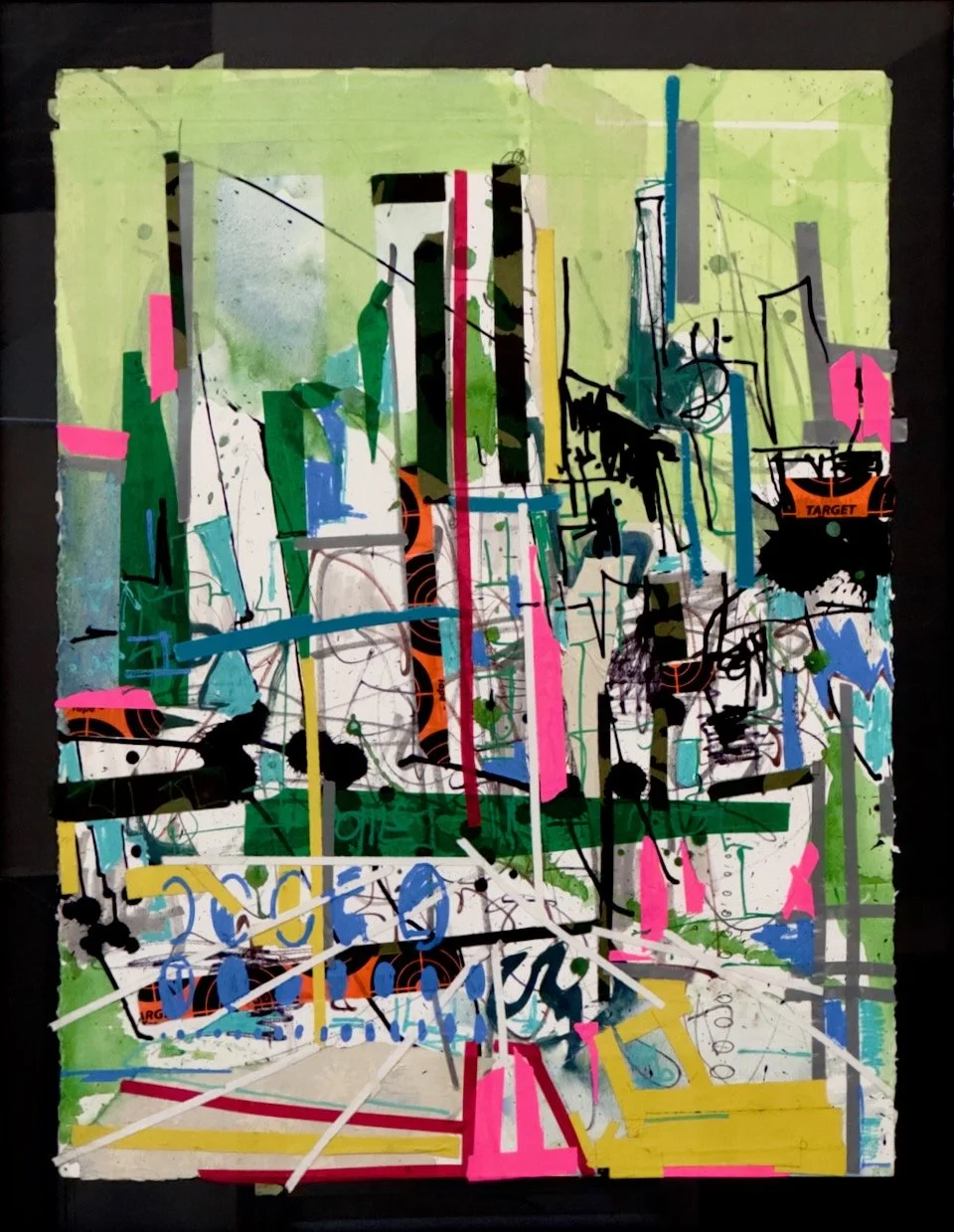The Dauntless Indignant Geography Series are visual Koans (documents that test one’s understanding of Zen). DIGS is a synthesis of conceptual and representational imagery orchestrated and rooted in abstract expressionistic maps that guided the viewer through the visual form of the city and urban space.