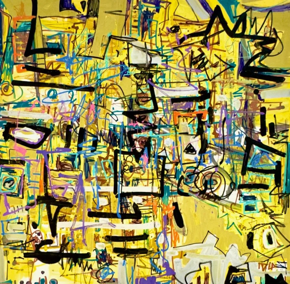DIGS longs for the rural, the naturally untamed, and meets its man-made counterpart on the surface constructed with a personal codex (a code, a manuscript, a book). Consisting of fourteen mixed media paintings using graphite, gouache and paint marker as materials. paintings on panel. Thirteen are 24 inches squared while one is at 36 inches by 48 inches. “Blackness”، light, energy, frequency, darkness/shadows and fire. Linked to Zen Buddhism, specifically its roots within Black culture, Abstract Expressionism, geography, space and time.