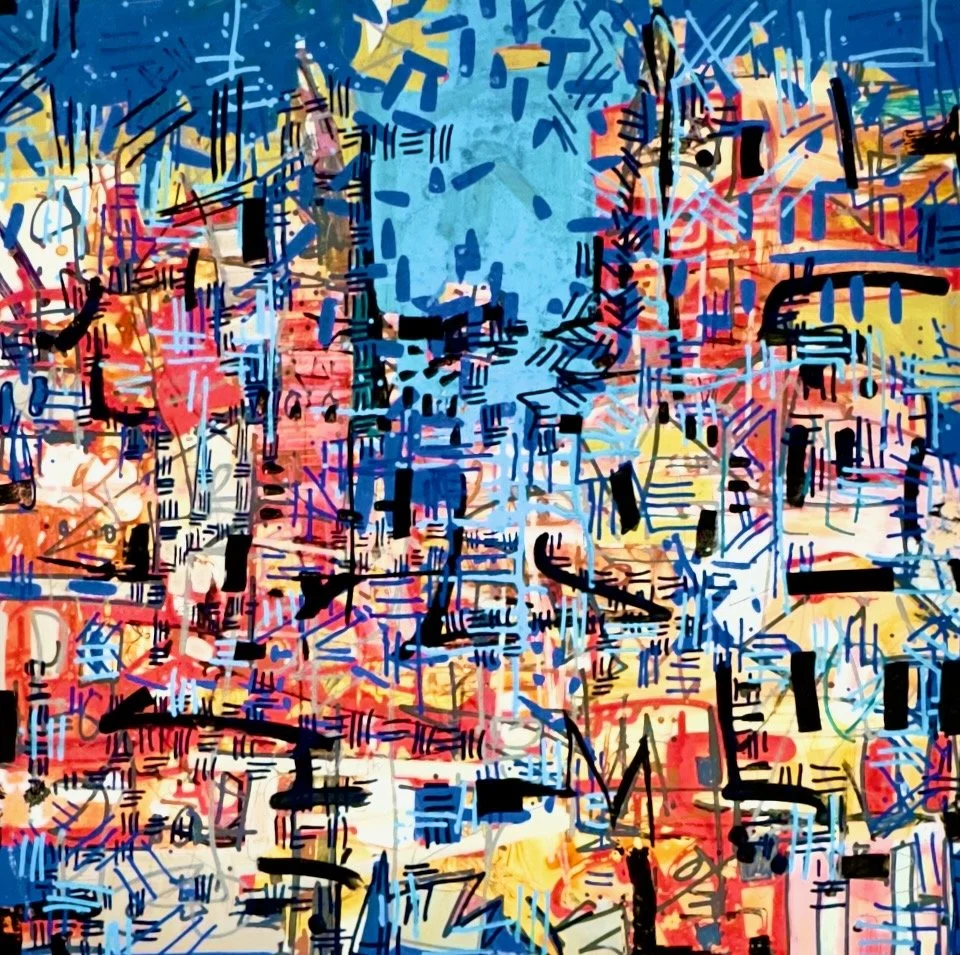 Mixed Media On Panel, 24“x24”, framed, 2025
